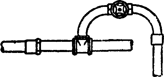 3 и 9 и через отверстие 2 сообщается с атмосферной камерой сухотрубного клапана, и последний независимо от наличия в сети сжатого воздуха откроется для немедленного пропуска воды в сеть. Тот же аппарат может быть превращен в эксгаустер; для этого отверстие 2 соединяется не с сухотрубным клапаном, а со спускной трубой и кроме того к аппарату должен быть присоединено дополнительное приспособление, устраняющее напрасную утечку воды в спускную трубу после того, как сеть освободится от воздуха и наполнится водою.