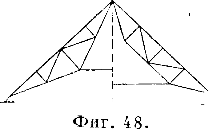 ние. Решетчатая ферма по фигура 50 представляет собой обыкновенную форму стропильной фермы, применяемой в промышленном строительстве. Следует при этом избегать длинных сжатых стержней и чрезмерно острых углов в сое-