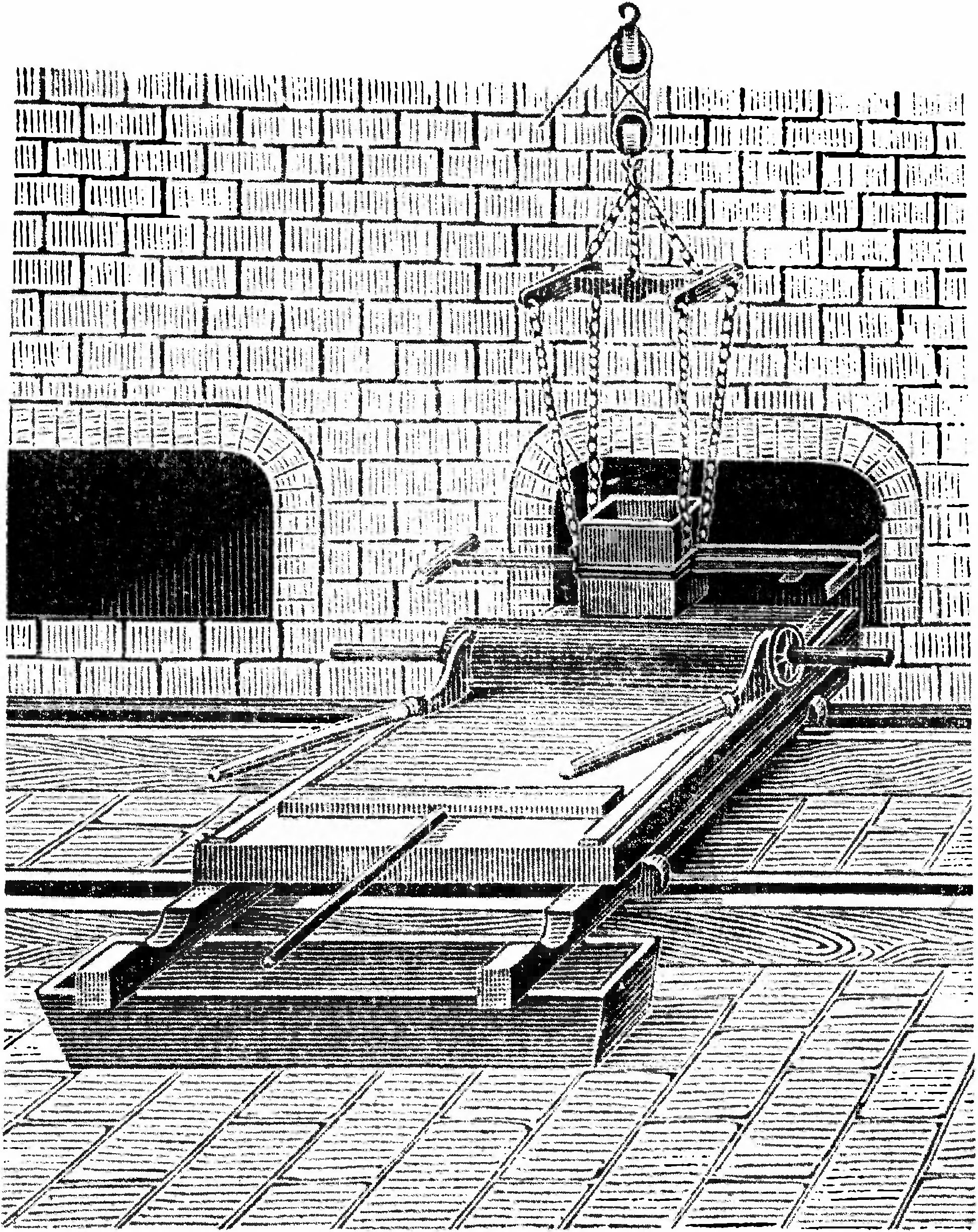 Ясно, что последний способ закалки гораздо выгоднее: при нем продолжительность закалки понижается с 24 и более часов, нужных в обыкновенных опечках, до 6—8 часов; кроме того сокращается на одну треть расход топлива.