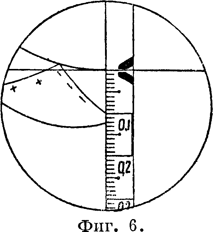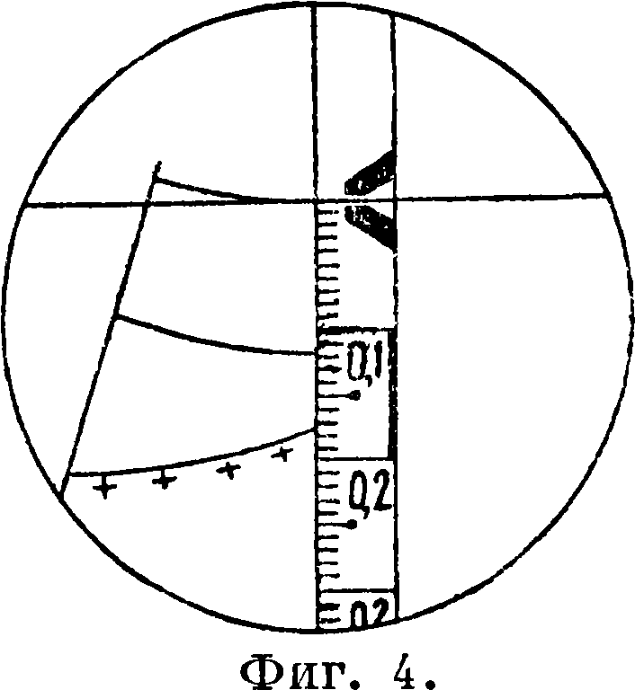 Употребление Т. системы Фенне-л я. Установив Т. на станции, а рейку на пикете, наводят на рейку трубу так, чтобы изображение рейки совпало с ребром призмы т2, а горизонтальная нить сетки покрыла нуль рейки (фигура 4, 5, 6 и 7). Делаем отсчет по рейке, пользуясь кривой расстояний и превы