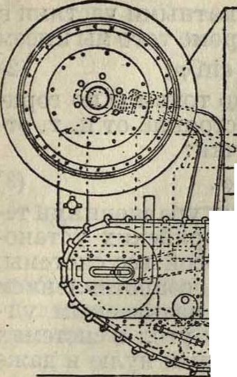 _ сцепление и. В это последнее. введена фрикционная связь к. Вертикальная на осуществляется около цапф при помощи винтового подъемного механизма, состоящего из ходового винта л и матки с конич. колесом м, при-