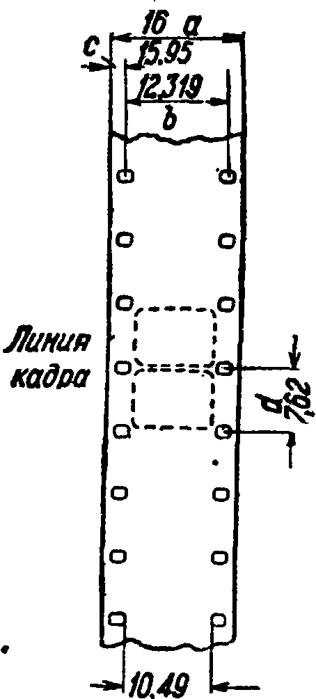 Что касается узкой (16-мм) пленки, изготовляемой на безопасной (гл. обр. ацетатной) основе, то надо отметить существование двух стандартов для узкого кинопозитива: один для немого фильма, другой—для звукового. Для немого фильма позитивной узкой пленки на фигуре 15 даны