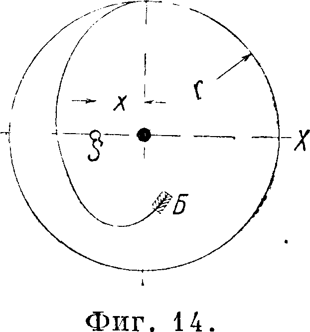 Если на барабан а (фигура 7) с пружиной намотать шнурок или цепь к и этот шнурок другим концом укрепить на шкиве б переменного радиуса, так называемым улитке, с таким расчетом, чтобы, когда пружина заведена полностью, шнурок действовал на наименьший радиус шкива, и наоборот, при почти спущенном заводе—на наибольший его радиус, то закон изменения радиуса шкива м. б. подобран так, что момент на оси его будет постоянным. Приспособление это (довольно дорогое и трудно поддающееся регулировке при замене пружины) употребляется в настоящее время исключительно в морских