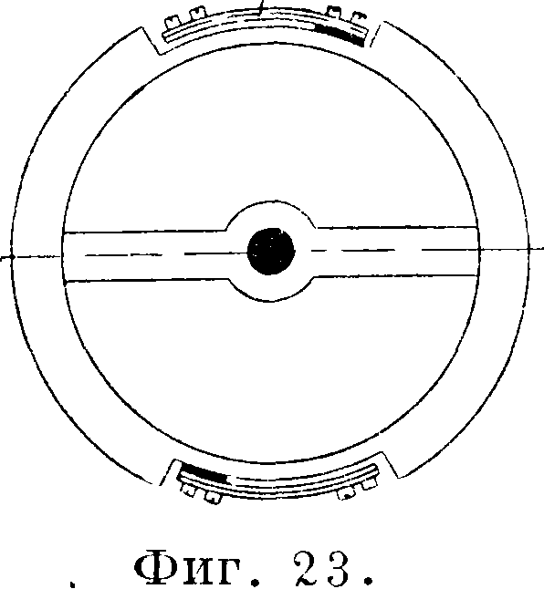 r^j пружины, изготовленные из этого сплава, дают возмож-ность применять однородный пг* ~2· латунный баланс, снабженный лишь небольшими биметаллическими придатками «аффиксами» а (фигура 23), причем в биметаллических пластинках этих балансов сталь должна лежать внутри или снаружи в зависимости от. термоэластических свойств пружины. Балансы этого рода нашли себе применение для средней хронометрии (карманные Ч.), т. к“, они очень дешевы, удобны и не деформируются от центробежной силы. Предложены они П. Дитисхеймом.
