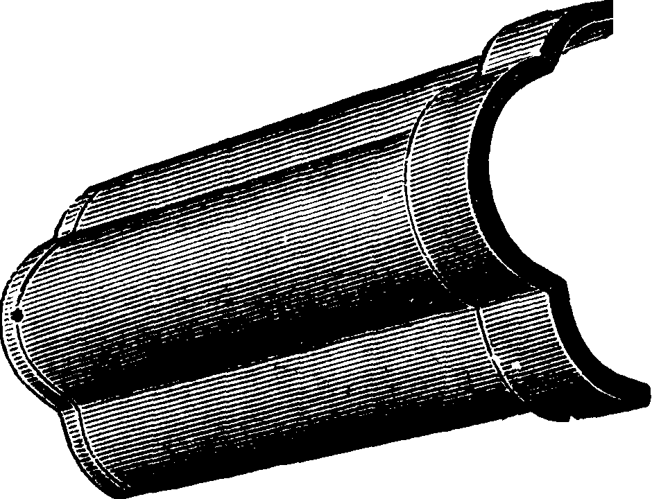 Ч. применяют кольцевые печи (смотрите Кирпичное производство) или печи с обратным пламенем (смотрите Изразцы) и др., при этом загрузку черепицы в печь производят на ребро, для того чтобы пламя охватывало ее со всех сторон. Черепица, загружаемая в печь, должна быть хорошо высушена; подъем £°и охлаждение обожженной черепицы должны быть медленными и более осторожными, чем при строительном кирпиче. Ч. в редких слу-Фигура 2б. " чаях (для декоратив ных целей) при выполнении стильных построек покрывается свинецсодержащей глазурью (смотрите). Покрытие глазурью при этом производит-сякакпо необожженной, так и по обожженной Ч. Применяется также способ обжига Ч. в восстановительной атмосфере (в определенный период обжига); Ч. при этом уплотняется, приобретает темнобурый цвет с металлич. отблеском. Для получения восстановительной атмосферы в конце обжига в закрытую для проникновения воздуха печь забрасывают еловые ветки,.нефтяные остатки и др. В поры Ч. проникает СО, при этом окись железа восстанавливается, и углерод выделяется в виде тонких частичек графита, благодаря чему и получается соответствующая окраска.