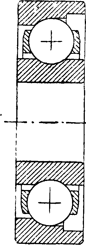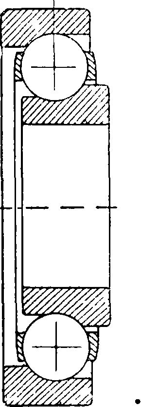 3) Шарикоподшипники магне τη ы е (фигура 3) допускаю:· радиальную, аксиальную (в одном направлении) и комбинированную нагрузки и применяются при больших скоростях и легких нагрузках. Монтируются эти подшипники попарно и допускают легкую разборку, так как беговая дорожка в наружном кольце с одной стороны открыта.