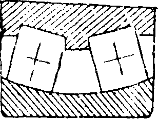7) Роликоподшипники конические (фигура 7) хорошо воспринимают как радиальную, так и аксиальную (в одном направлении) нагрузки. Радиальная нагрузка, действуя на одно из колец, вызывает появление осевого усилия в направлении, обратном допускаемой осевой нагрузке. Для восприятия этого усилия приходится коиич. роликоподшипники монтировать всегда попарно.