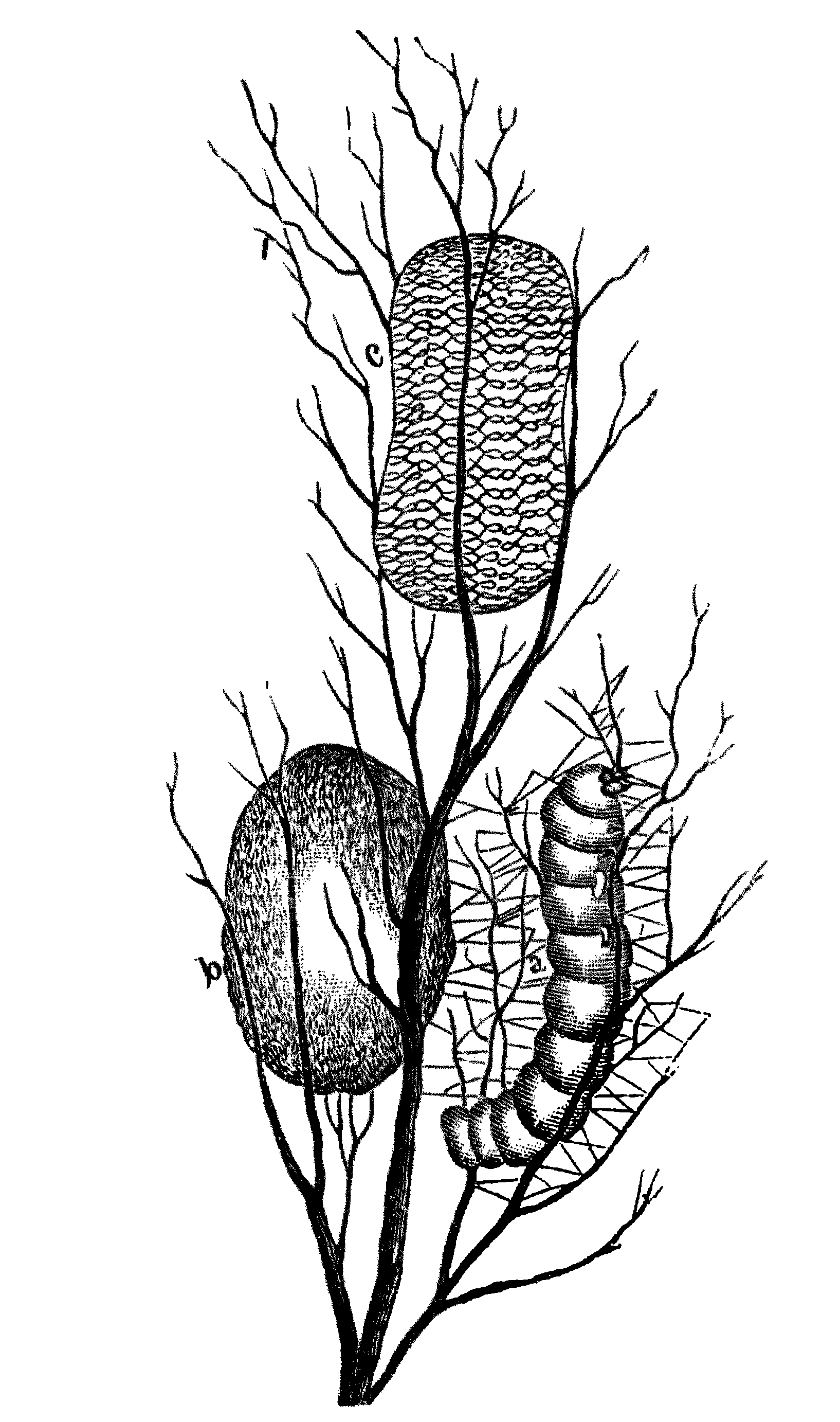 Бабочки-самки откладывают яички, из них выводятся черви и так далее. Нить, получаемая при размотке кокона, и называется шелком. Дороговизна шелка станет понятной, если принять во внимание, что из каждого кокона выходит около 1/5 г шелка, то есть для получения одного кг шелка нужно вывести около 5 000 червей, которые требуют за собой тщательного ухода и специального корма. Шелкопряд питается только листьями тутового дерева, которое растет лишь в местностях с теплым климатом, почему и шелководство возможно только на юге.