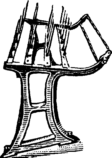 Крутильный ватер (фигура 4) отличается от крутильных ватеров, применяемых в льнопрядении, размером рогулек и для больших рогулек— системой торможения катушек. При больших размерах рогулек торможение катушек производится не с помощью грузиков, а с помощью ного шпагата.