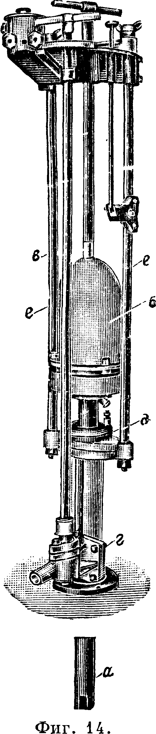 ЛагЧерникеева (The Submerged Electric Log Со., Лондон) состоит из стержня-суппорта а (фигура 15), выставляемого на 38,2 сантиметров (15 дм.) в воду за днище или борт корабля. Для установки лага на корабле в междудонном пространстве находится станок б с запорным клапаном в и сальником д. В нижней части суппорта находится четырехлопастный винт, обращен-